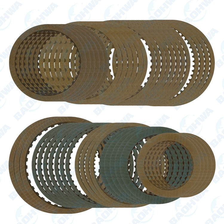 Kit Contains | 5 x 2-3-4-6 Brake (B3) Friction Plates - 147 OD x 1.50mm x 36T 3 x Front Brake (B1) Friction Plates - 186 OD x 1.50mm x 36T 7 x Input Clutch (C1) Friction Plates - 161.1 OD x 1.80mm x 40T 4 x Input Clutch (C1) Friction Plates - 161.1 OD x 1.80mm x 60T 5 x High & Low Reverse Clutch (C3) Friction Plates - 124.8 OD x 1.60mm x 30T 6 x Direct Clutch (C2) Friction Plates - 158.6 OD x 1.80mm x 24T 4 x Reverse Brake (B4) Friction Plates - 167.5 OD x 1.80mm x 50T 8 x Reverse Brake (B4) Friction Plates - 167.5 OD x 1.60mm x 40T 6 x Low Brake (B2) Friction Plates - 147 OD x 1.50mm x 36T |