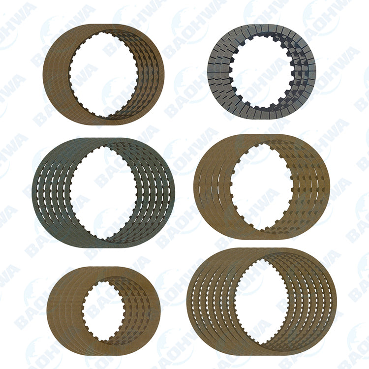 | Kit Contains | 7 x Input Clutch Friction Plates - 161.1 OD x 1.80mm x 60T 5 x High & Low Reverse Clutch Friction Plates - 124.8 OD x 1.60mm x 30T 6 x Direct Clutch Friction Plates - 158.6 OD x 1.80mm x 24T 6 x Reverse Brake Friction Plates - 167.5 OD x 1.80mm x 50T 5 x Forward Brake Friction Plates - 147 OD x 1.60mm x 39T 3 x Low Coast Brake Friction Plates - 132.5 OD x 1.60mm x 30T |
