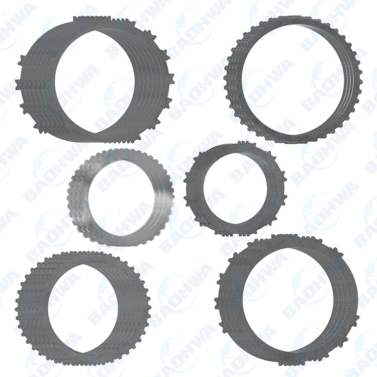 Kit Contains | 3 x Underdrive Brake 2 Steel Clutch Plates - 89 ID x 1.77mm x 11T 7 x Low Reverse (B2) Brake Steel Clutch Plates - 143 ID x 1.80mm x 12T 4 x 2nd (B1) Brake Steel Clutch Plates - 143 ID x 2.00mm x 12T 6 x Forward (C1) Steel Clutch Plates - 115 ID x 1.80mm x 40T 3 x Underdrive Brake 1 Steel Clutch Plates - 90.7 ID x 2.00mm x 40T 4 x Direct (C2) Steel Clutch Plates - 140 ID x 3.00mm x 40T |
